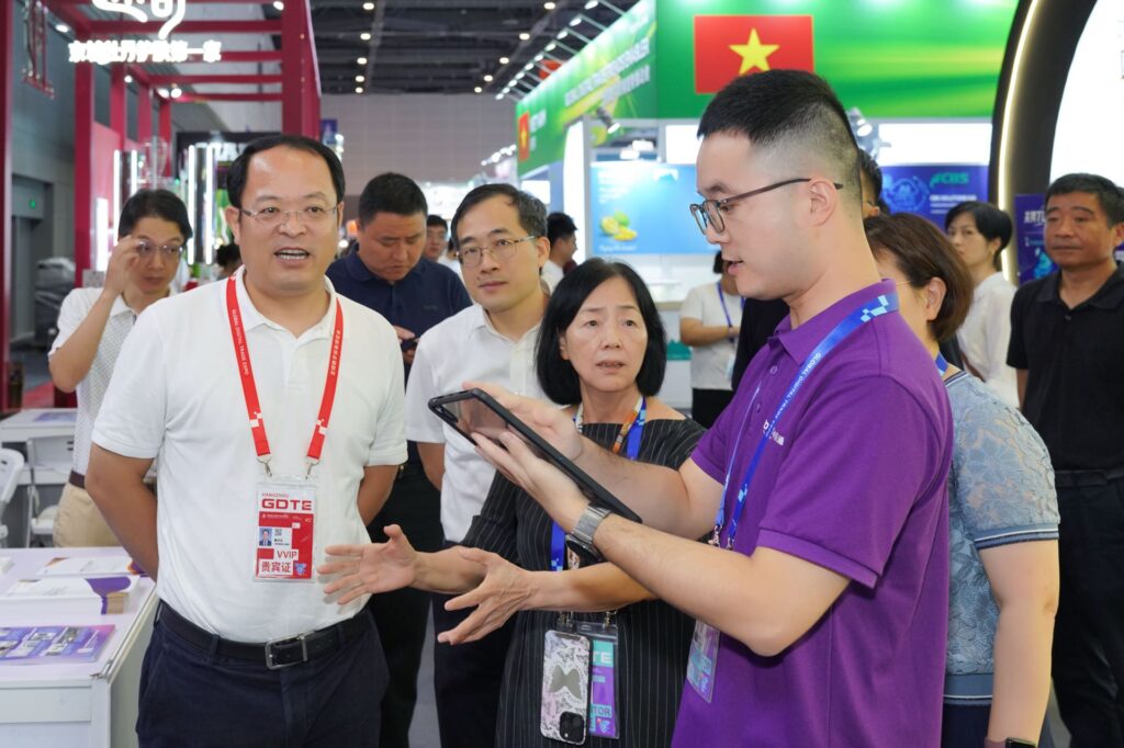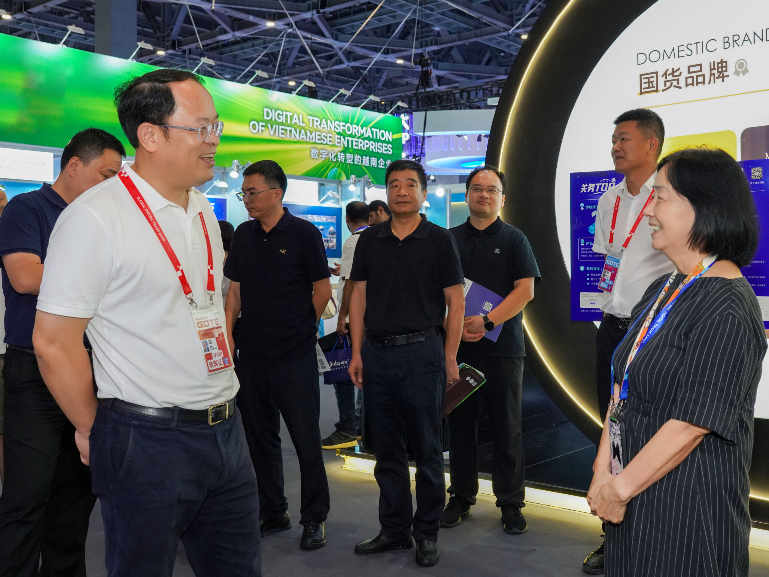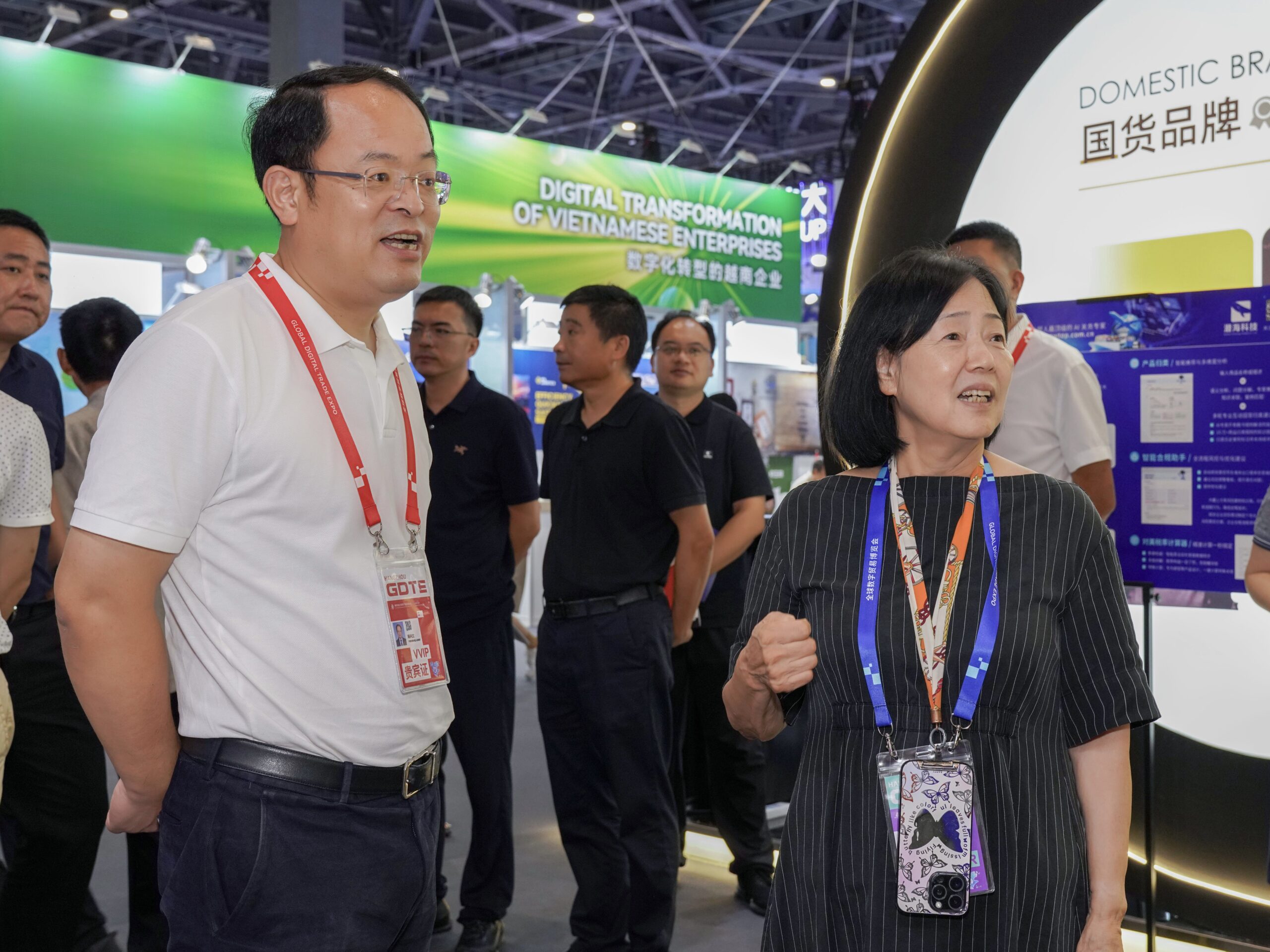 9月27日,第四届全球数字贸易博览会现场热度持续,鄞州区区委副书记、区长陈兴立莅临宁波中基惠通展位,与公司总裁应秀珍展开深度交谈,围绕企业数字贸易发展方向提出指导建议。